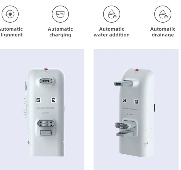 The WSC50 Workstation, available as an optional accessory (with the standard configuration including a manual charger), complements the vehicle's functions by providing water and power supplies.